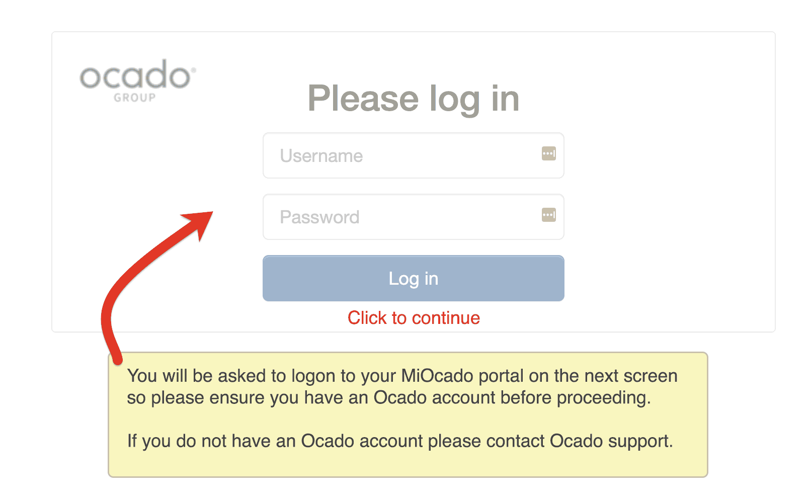* Please note: you are about to be directed to the MiOcado web portal to logon to the company network. Driving Monitor does not control the Ocado portal sign on procedure so please DO NOT contact Driving Monitor if you cannot logon. Driving Monitor cannot support any password/sign on issues as this is managed by the Ocado Servicedesk on 0XXXX XXXXXX or email [email protected]